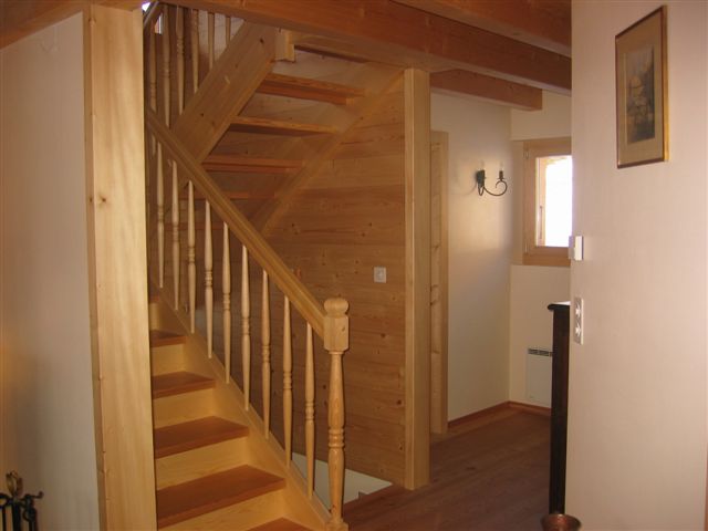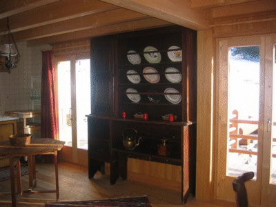 - Coin à manger (table de 8 à 10 personnes avec spacieuse banquette valaisanne en mélèze réalisée par un artisan de la région)